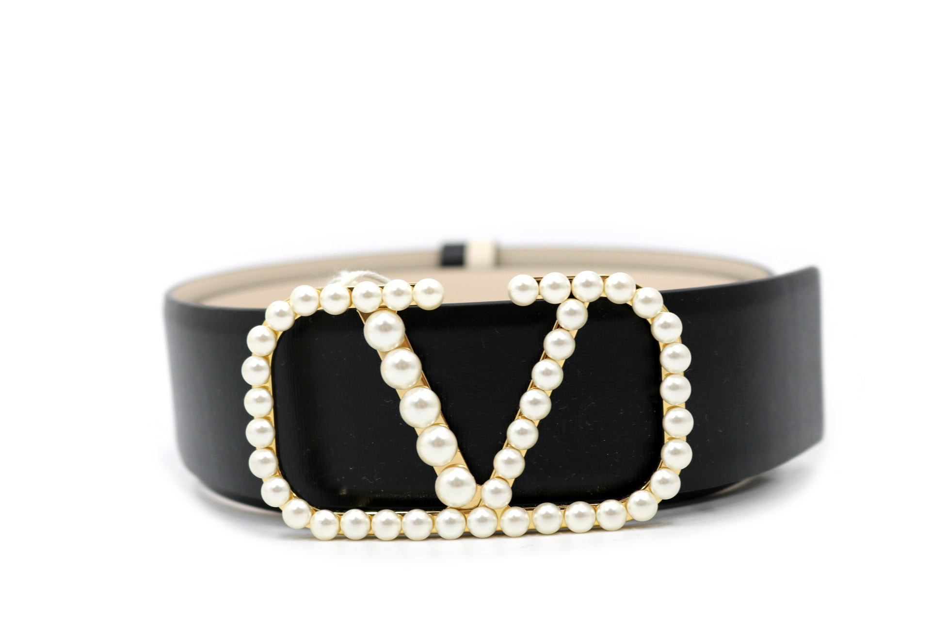 Valentino Cintura Reversibile Pelle Nera/Bianca Logo Perle